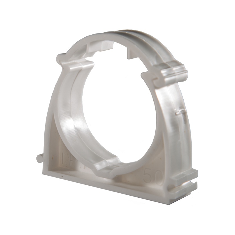 Держатель пластиковый с верхней защелкой для труб d=63 мм, белый (уп. 2 шт)
