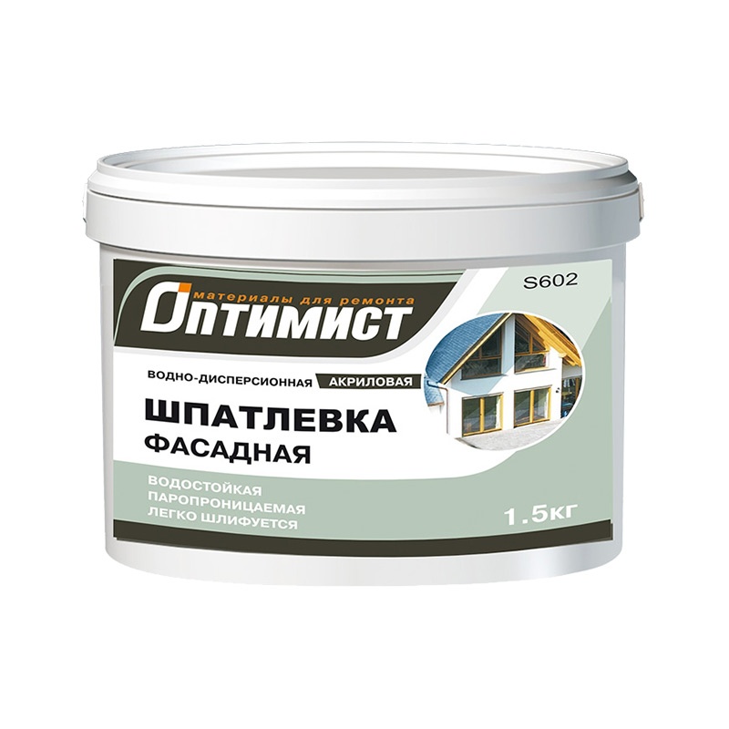 Шпаклёвка акриловая Оптимист S602 фасадная водостойкая (1,5 кг)