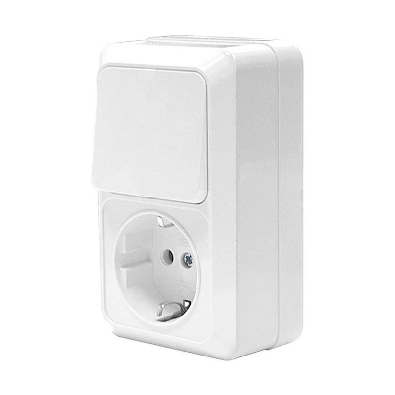ОЛИМП БКВР — комбинированный вертикальный блок открытой установки: 1 клавиша 10 А + 1 гнездо с заземлением 16 А, 230 В, IP20, цвет — белый. Предназначен для организации точки управления и питания в помещениях с открытой проводкой: бытовые, служебные и подсобные помещения, временные конструкции и мастерские. Идеален при ремонте и модернизации, когда нужно быстро установить выключатель и розетку в одном корпусе.