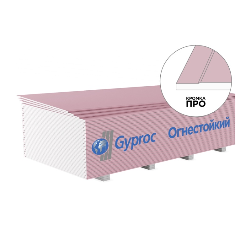 Гипсокартон огнестойкий Gyproc, 2500х1200х12,5 мм