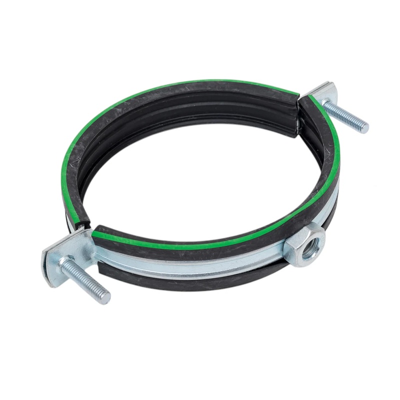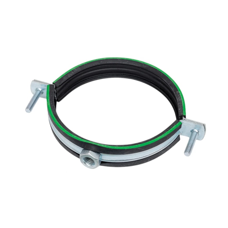 Применяются в системах водоснабжения, отопления, канализации. Хомуты необходимы при монтаже систем трубопроводов на вертикальной или горизонтальной поверхности. Основными задачами являются надежная фиксация системы, уменьшение вибрации, снижение уровня шума и частичная компенсация теплового расширения. Поставляется с резиновым уплотнителем и гайкой.
