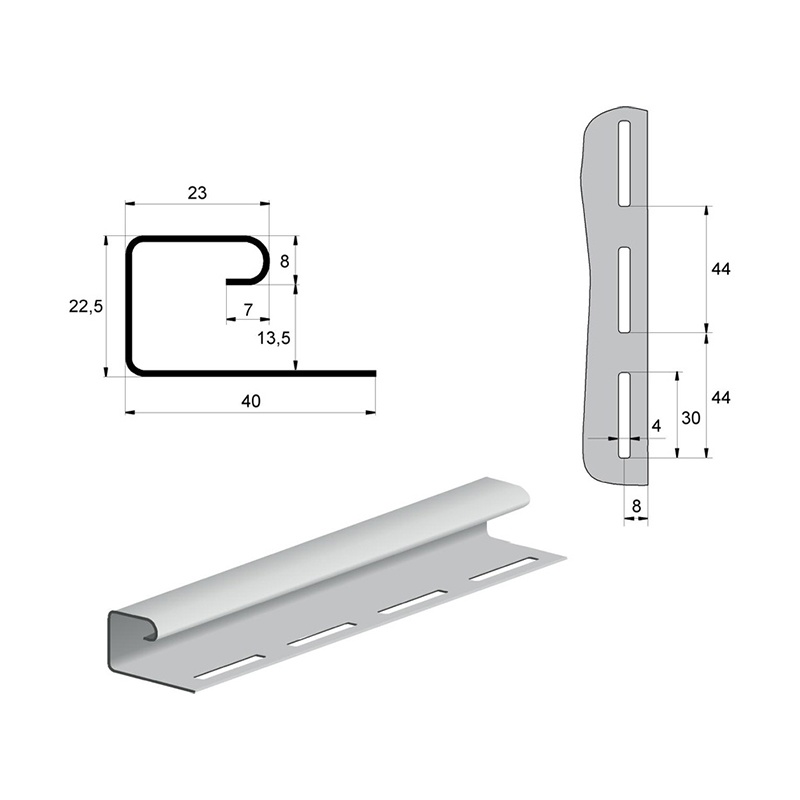 Элемент "папа" для решётки грильято 50х50 мм, L=600 мм, h=40 мм, серебро