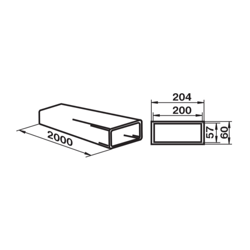 Канал (воздуховод) плоский Наш Вент 8020, пластик, 204х60 мм (2 м)