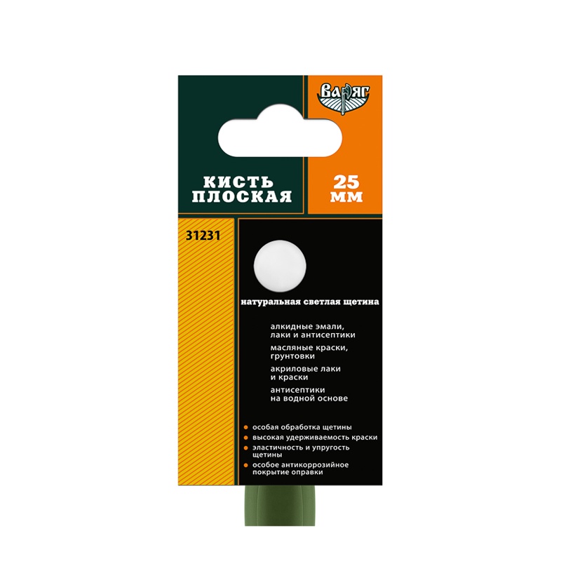 Кисть плоская ВАРЯГ 31231 светлая щетина 25 мм