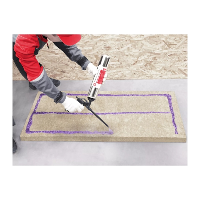 Не имеет вторичного расширения, после выпуска из баллона оседает, образуя вязкую клеевую массу. Обладает хорошей устойчивостью к влажности, плесени, старению, высокой адгезией к дереву, древесно-стружечным плитам, плитам OSB, мозаичной облицовке, а также бетону, цементным штукатуркам и другим основаниям. Не оказывает давления на склеиваемые элементы.