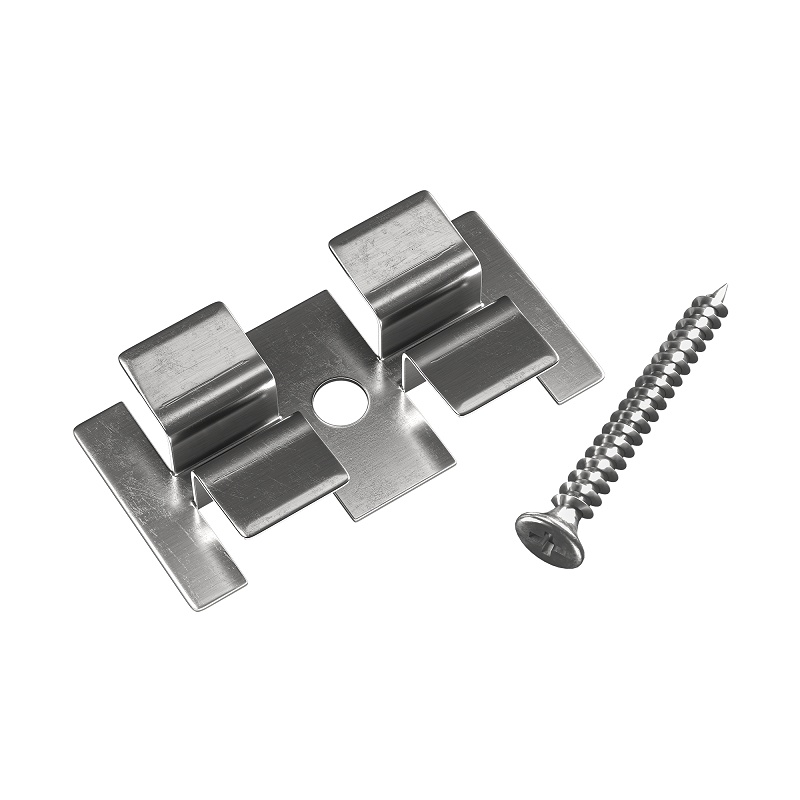 Предназначена для крепления рядов террасных досок к лагам. На 1 м2 для террасной доски 150х25х3000 мм с учетом шага крепления в 350 мм требуется 20 шт. рядных клипс. Для террасной доски 125х25х3000 мм на 1 м2 требуется 24 шт. рядных клипс.