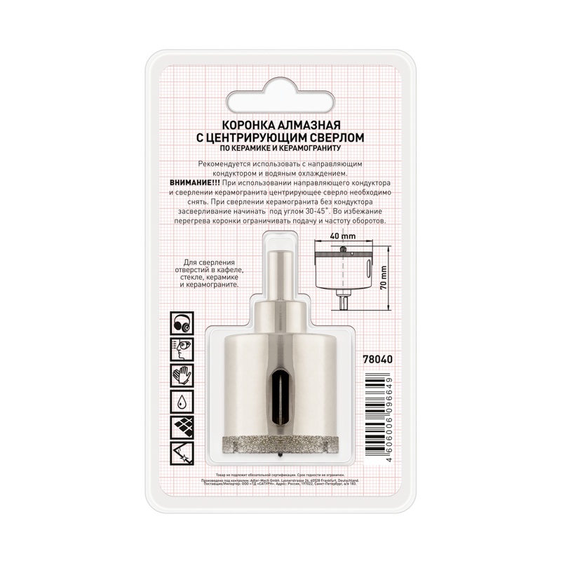 В строительном магазине Сатурн можно купить товар "Коронка алмазная Trigger 78040 40х70мм" по цене от 1390 руб с доставкой за 4 часа по Москве или оформить самовывоз.