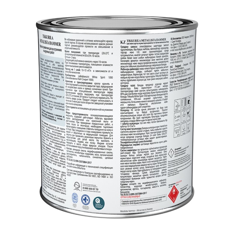 Краска по ржавчине Tikkurila/Tikkivala Metallista Hammer HC глянцевая (2,3 л)