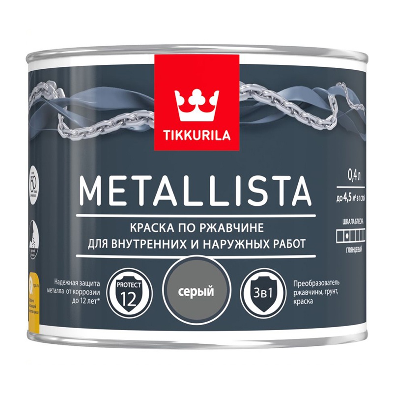 Краска по ржавчине Tikkurila/Tikkivala Metallista серая глянцевая (0,4 л)