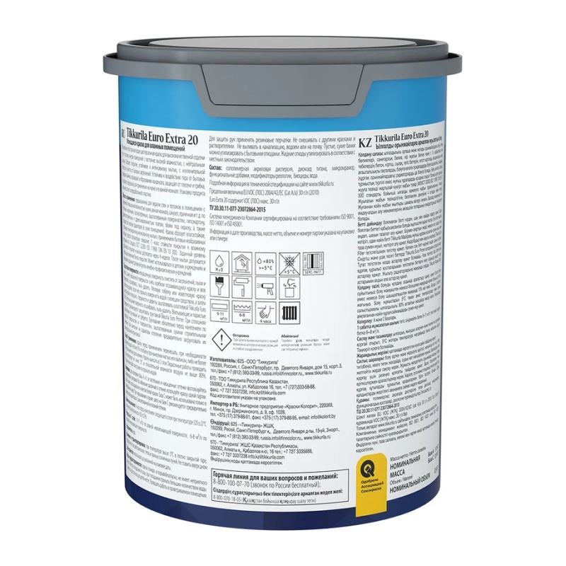 Краска для влажных помещений Tikkurila/Tikkivala Euro Extra 20 С полуматовая (0,9 л)
