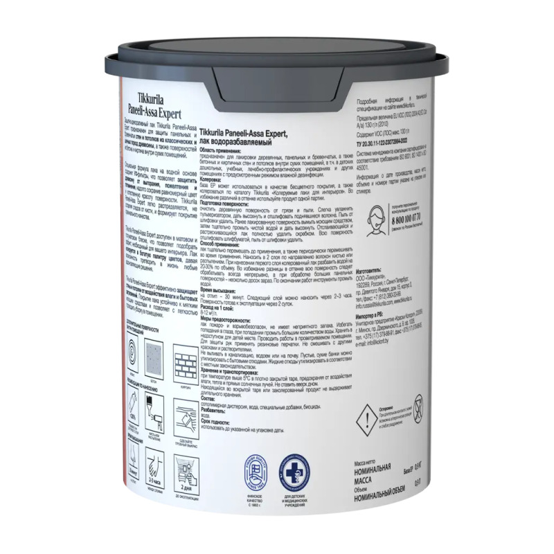 Лак в/д интерьерный для стен Tikkurila/Tikkivala Panelli-Assa Expert ЕР п/мат. (0,9 л)