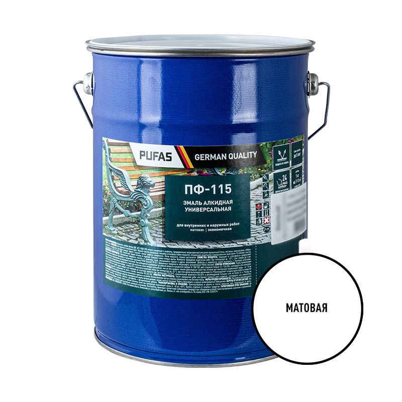 Эмаль Pufas ПФ-115 ГОСТ белая матовая (5 кг)