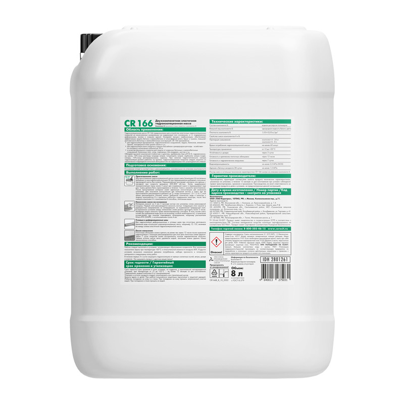 Масса гидроизоляционная эластичная Церезит CR 166 предназначена для устройства эластичных гидроизоляционных покрытий на незасоленных минеральных не содержащих гипс основаниях, в т.ч. подверженных деформациям. Устойчива к щелочной и солевой агрессии. Применяется для внутренних и наружных работ. Замедляет процесс карбонизации, обеспечивает эффективную защиту бетона и железобетона от атмосферной влаги, брызг и тумана, повышает долговечность бетонных и железобетонных конструкций.