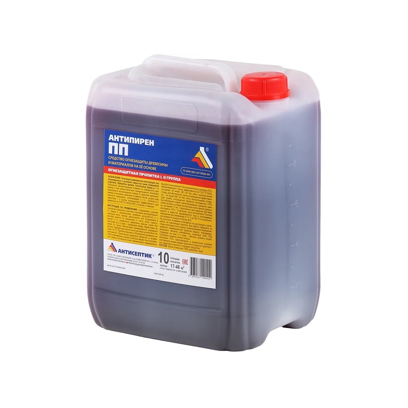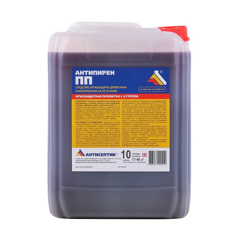 Объекты применения: стропила, обрешётка кровли и т.п. Антипирен "ПП" относится к средствам I, II группы огнезащитной эффективности для древесины по ГОСТ Р 53292-2009. Устойчив к старению.