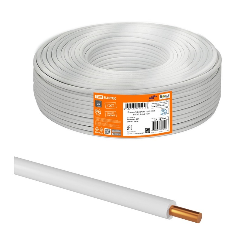 В строительном магазине Сатурн можно купить товар "Провод ПуВнг-LS (ПВ-1) 1х6мм2, белый (бухта-100 п.м.) ГОСТ 31947-2012" по цене от 9693 руб с доставкой за 4 часа по Москве или оформить самовывоз.