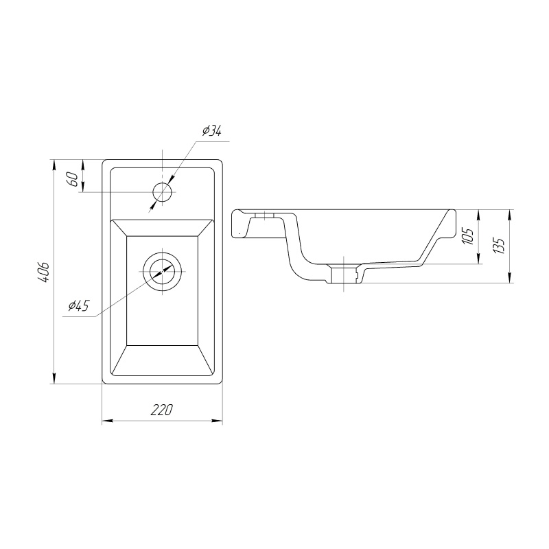 • Отверстие для перелива: Да