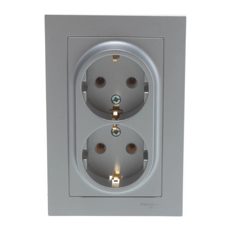 Розетка с/у Atlasdesign ATN000324, 2 гнезда, с/з, алюминий