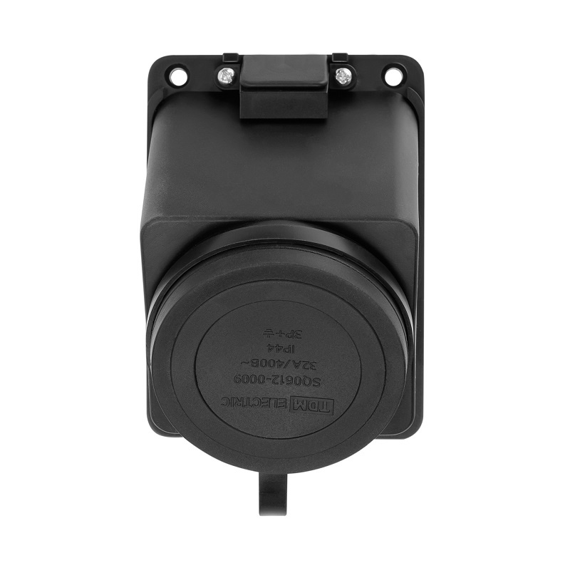 Розетка 1 гнездо, 3Р+РЕ, 32А, 380В, IP44, каучук, черная