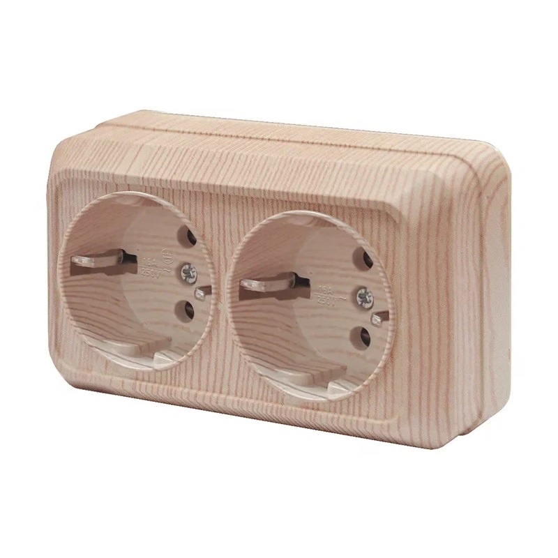 Розетка о/у Олимп 5560865, 2 гнезда, с/з, светлое дерево