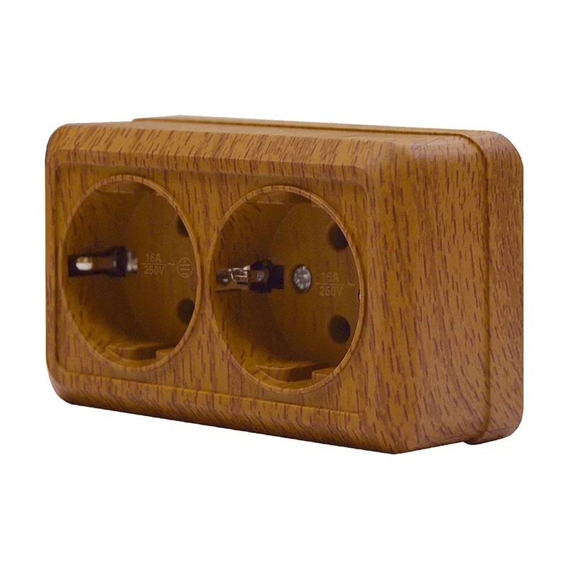 Розетка о/у Олимп 7946758, 2 гнезда, с/з, темное дерево