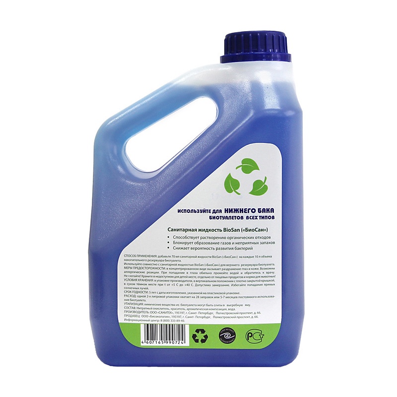 Жидкость-расщепитель Bio-San, для нижнего бака биотуалета, 2 л