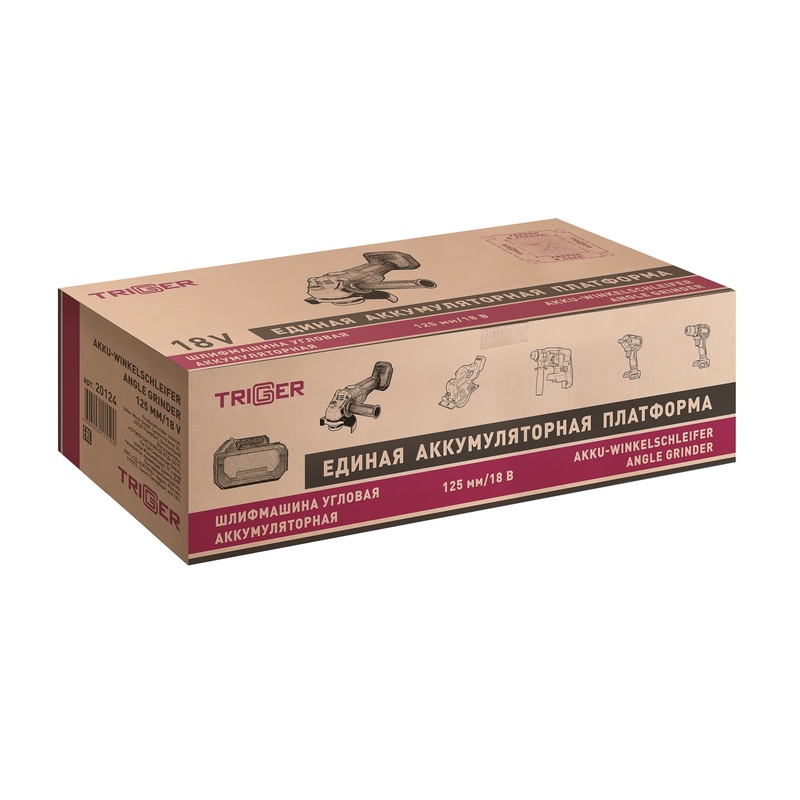 Шлифмашина угловая УШМ аккумуляторная Trigger 20124 ЕАП 18В, Li-ion d=125мм, без АКБ и ЗУ, бесщеточная