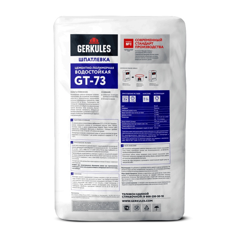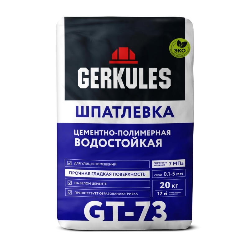 Шпаклевка полимерная водостойкая Gerkules GT-73 белая, 20 кг Т