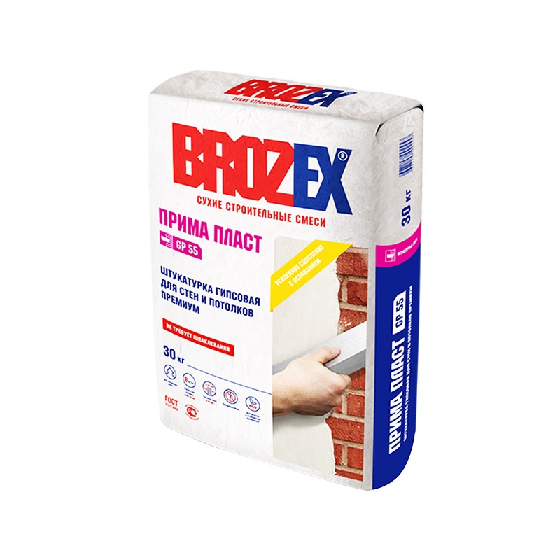 Штукатурка гипсовая для стен и потолков Brozex Прима Пласт GP 55, 30 кг
