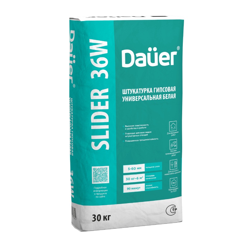 Штукатурка гипсовая Dauer Slider 36W универс. белая, 30 кг