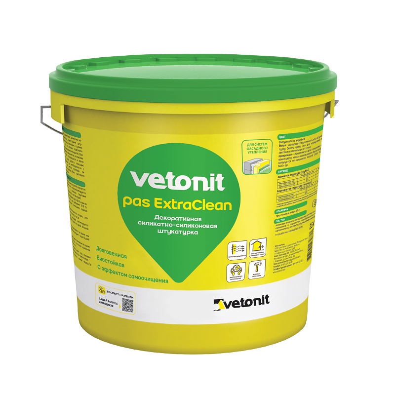 Штукатурка Vetonit pas ExtraClean А100 шуба, 1,5 мм, белая (25 кг)