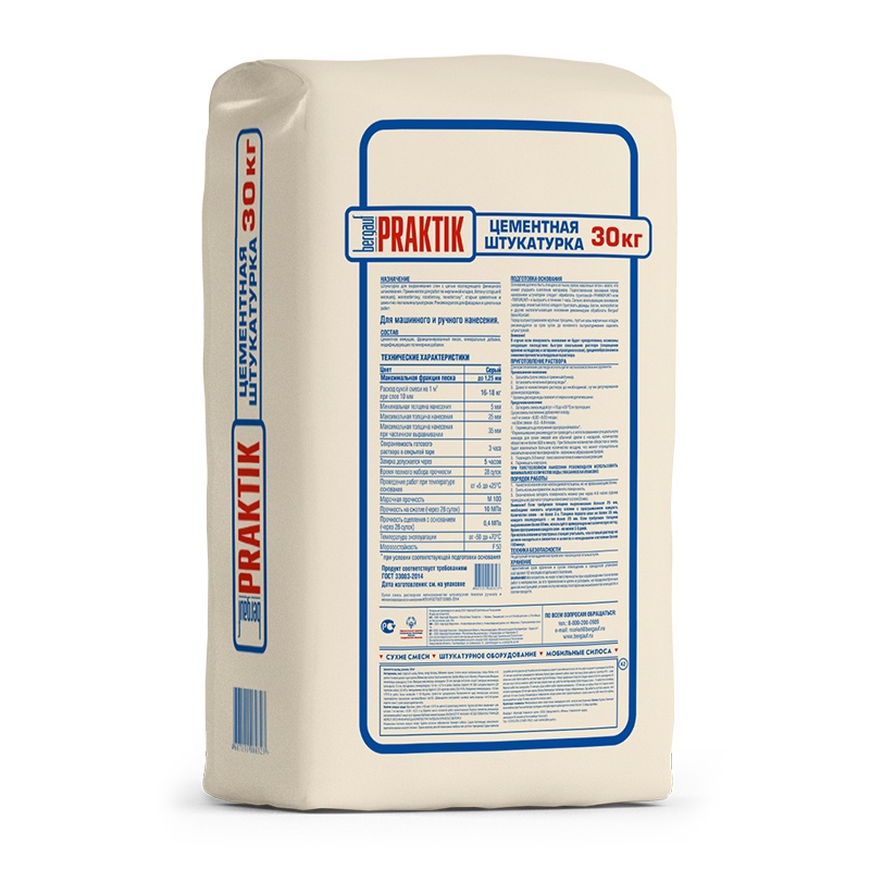Штукатурка цементная Bergauf Praktik для наружных работ, 30 кг
