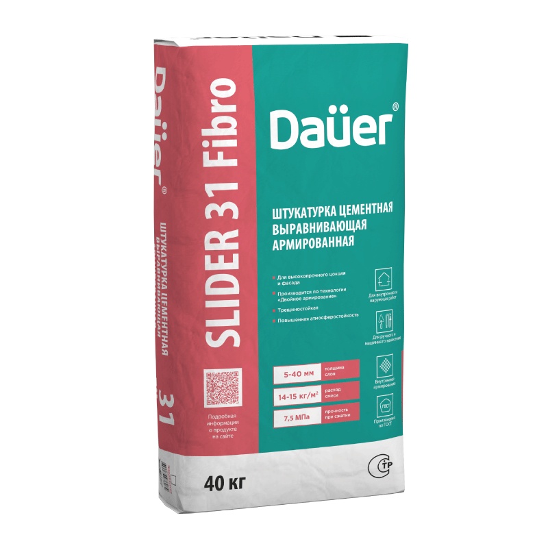 Штукатурка цементная армированная Dauer Slider 31 Fibro, 40 кг
