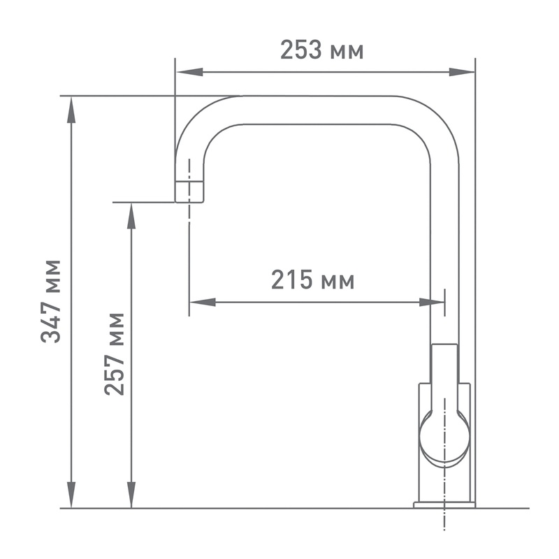 - Излив: Поворотный, высота 25,7 см, расстояние до точки падения воды 21,5 см