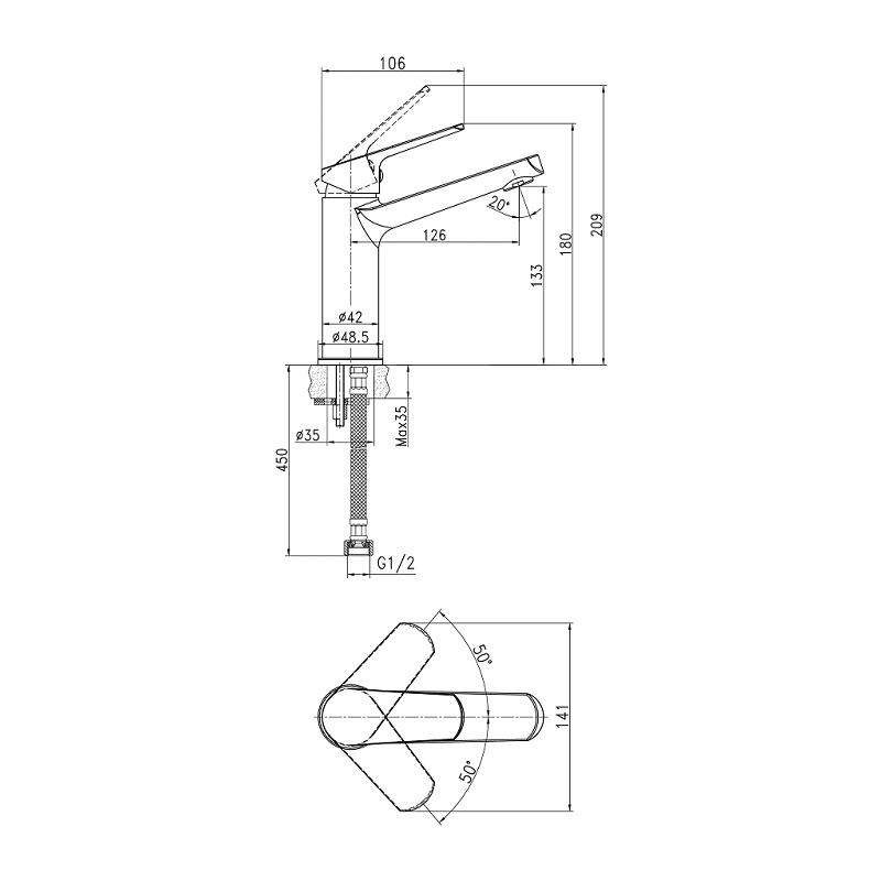 Предназначен для установки на раковину. Корпус из высококачественной латуни. Керамический картридж. Аэратор Eco Neoperl.