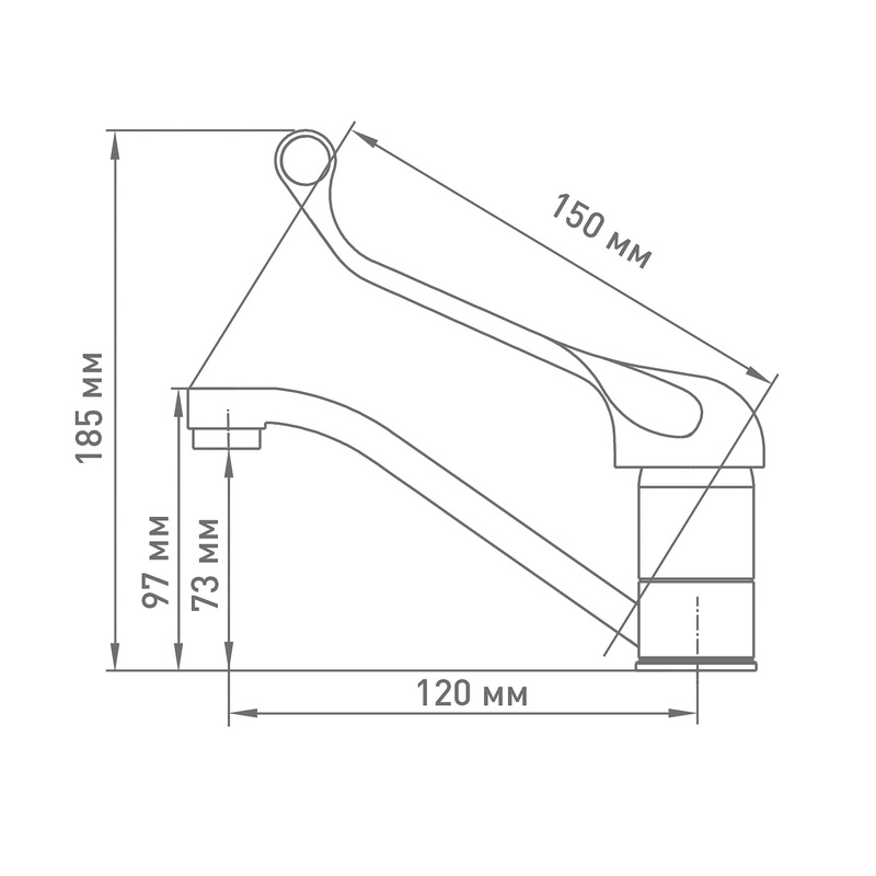 - Излив: Поворотный, длина 15 см, высота 7,3 см, расстояние до точки падения воды 12 см