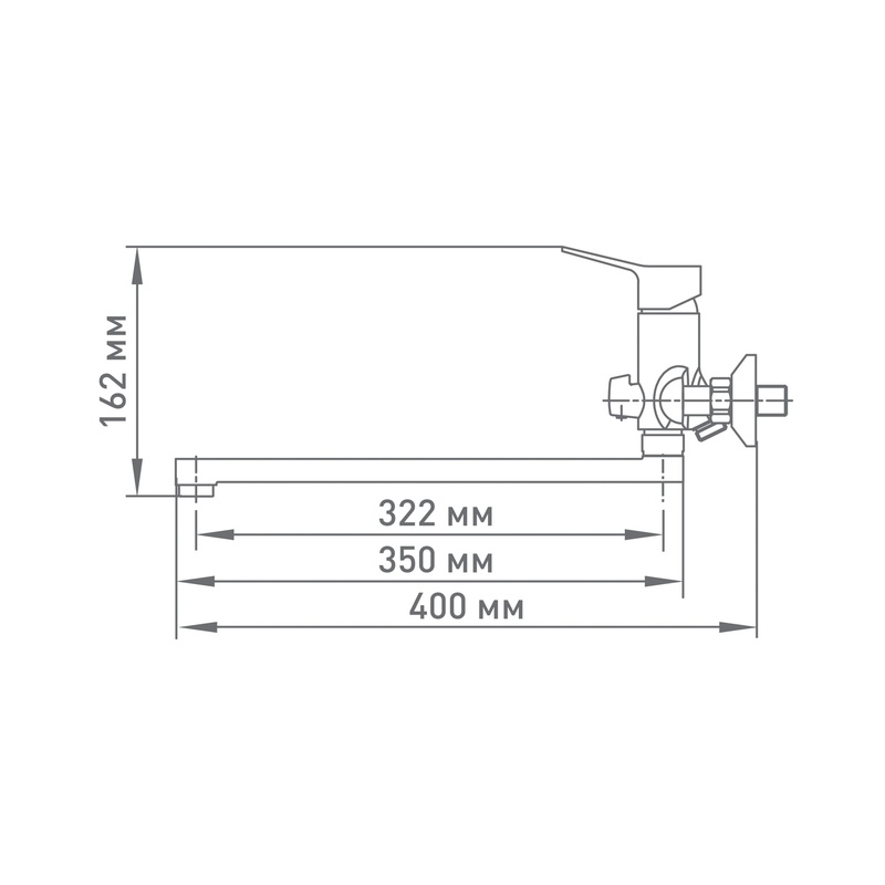 - Излив: Поворотный, длина 35 см, расстояние до точки падения воды 40 см