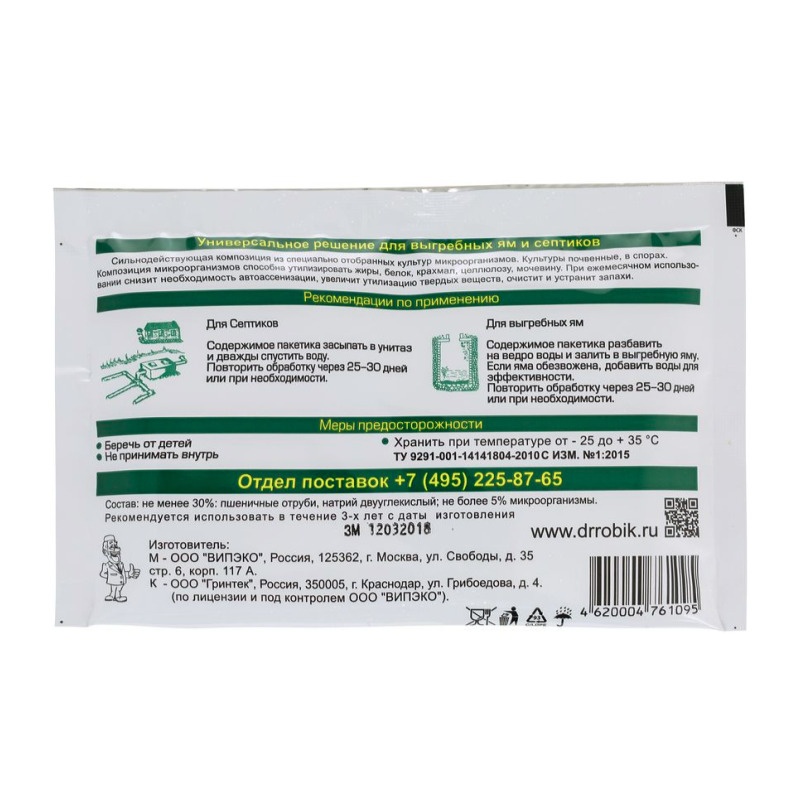 Средство Доктор Робик для обслуживания выгребных ям и септиков, 75 г