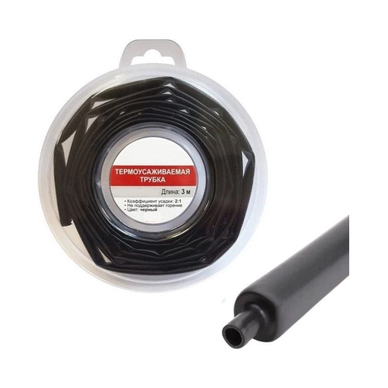 Термоусадочная трубка ТУТнг d=12/6мм, черная (ролл 3 м)