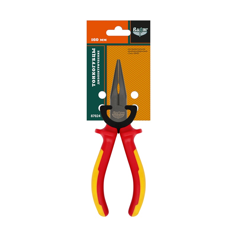 Тонкогубцы Варяг 87024 диэлектрические 1000В, 160 мм