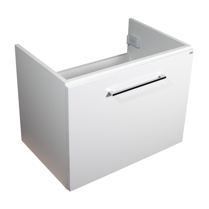 - Стильный дизайн – белый глянцевый фасад с хромированной ручкой-скобой впишется в любой интерьер.