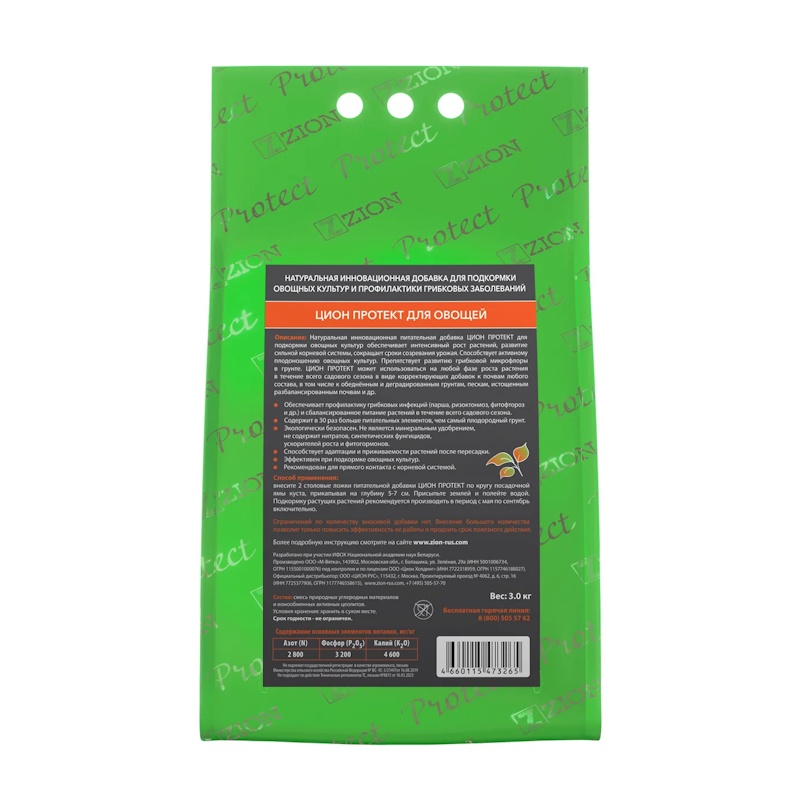 Удобрение Zion Protect для выращивания овощей (3 кг)