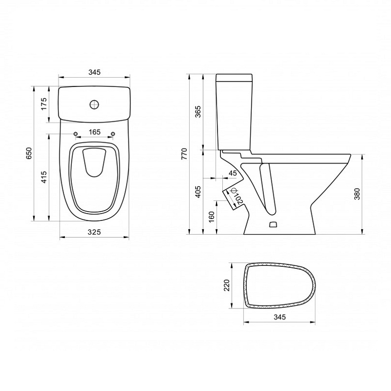 Унитаз-компакт Santek Лига, косой выпуск, 650х339х759 мм