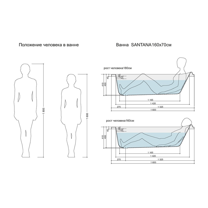 Ванна акриловая Cersanit Santana, без ножек, 1600х700 мм