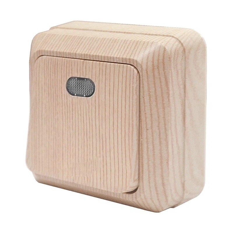 Выключатель о/у Олимп 5560827, 1 клавиша, с/инд, IP20, светлое дерево