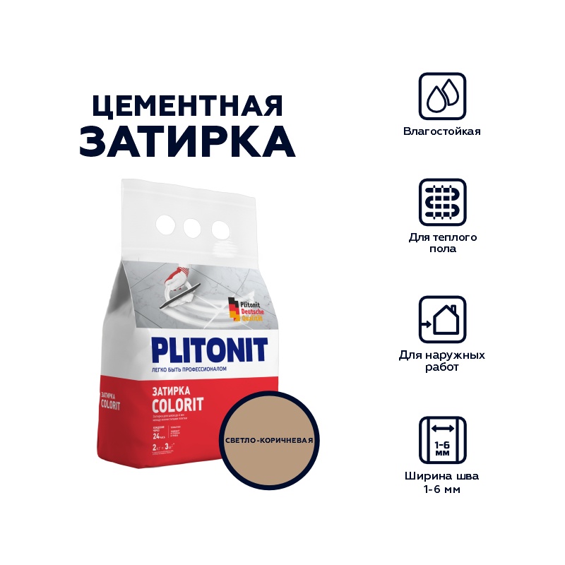 Затирка Plitonit Colorit светло-коричневая, 2 кг